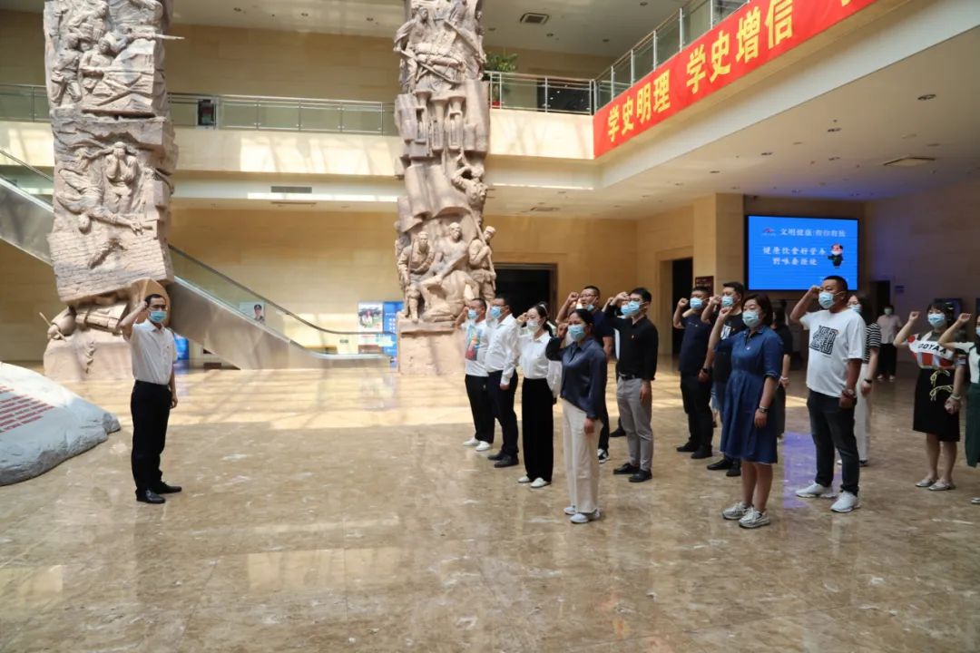 參觀結(jié)束后,全體人員在紀(jì)念館浮雕墻前一起合影留念,在鮮紅的黨旗下,感受黨的優(yōu)良傳統(tǒng),重溫紅色革命激情,凝聚新征程奮進(jìn)力量。