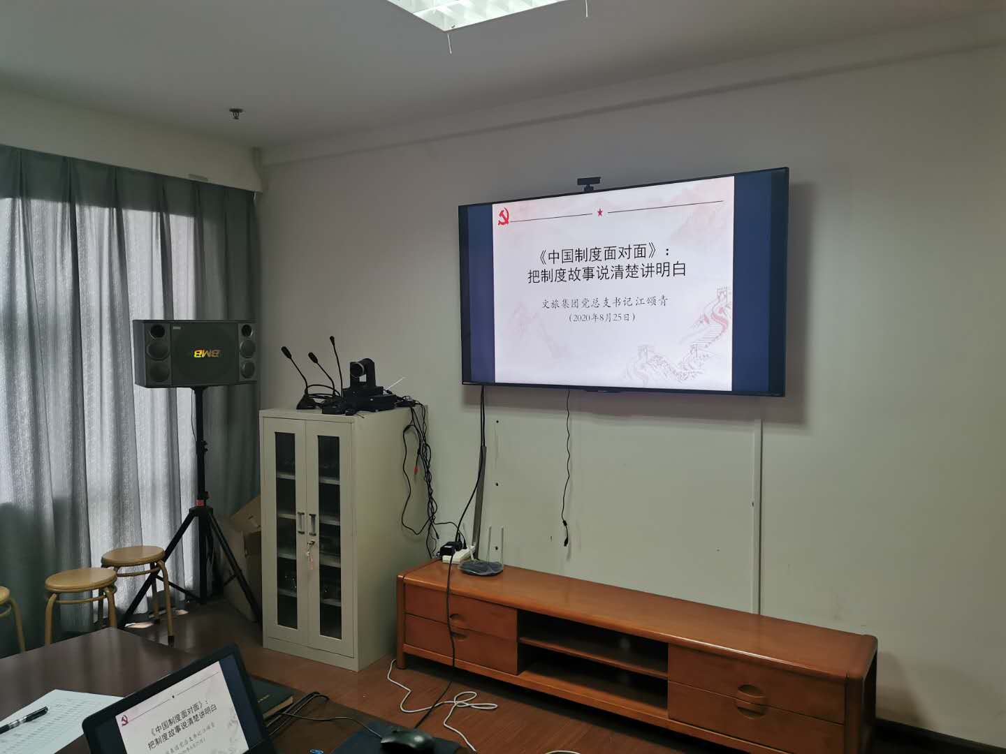 為深化黨的十九屆四中全會精神的學習宣傳貫徹,更好地理解堅持和完善中國特色社會主義制度、推進國家治理體系和治理能力現(xiàn)代化的各項決策部署,8月25日,文旅集團開展中心組(擴大)學習及“書記上黨課”活動,集中學習《中國制度面對面》著作內容。