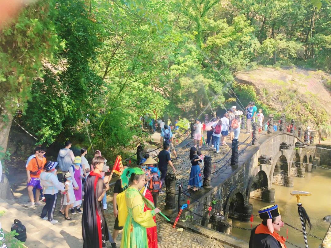 國慶假日期間,漁灣景區(qū)與連云港市演藝集團合作,在做好疫情防控的前提下,讓演藝走進景區(qū),組織“漁灣美在你心中”的文旅活動,豐富了節(jié)日旅游市場?;春颉⑴用駱穲F、西游情景劇等精彩演繹吸引眾多游客駐足觀看,紛紛拿出手機拍下這美好時刻。