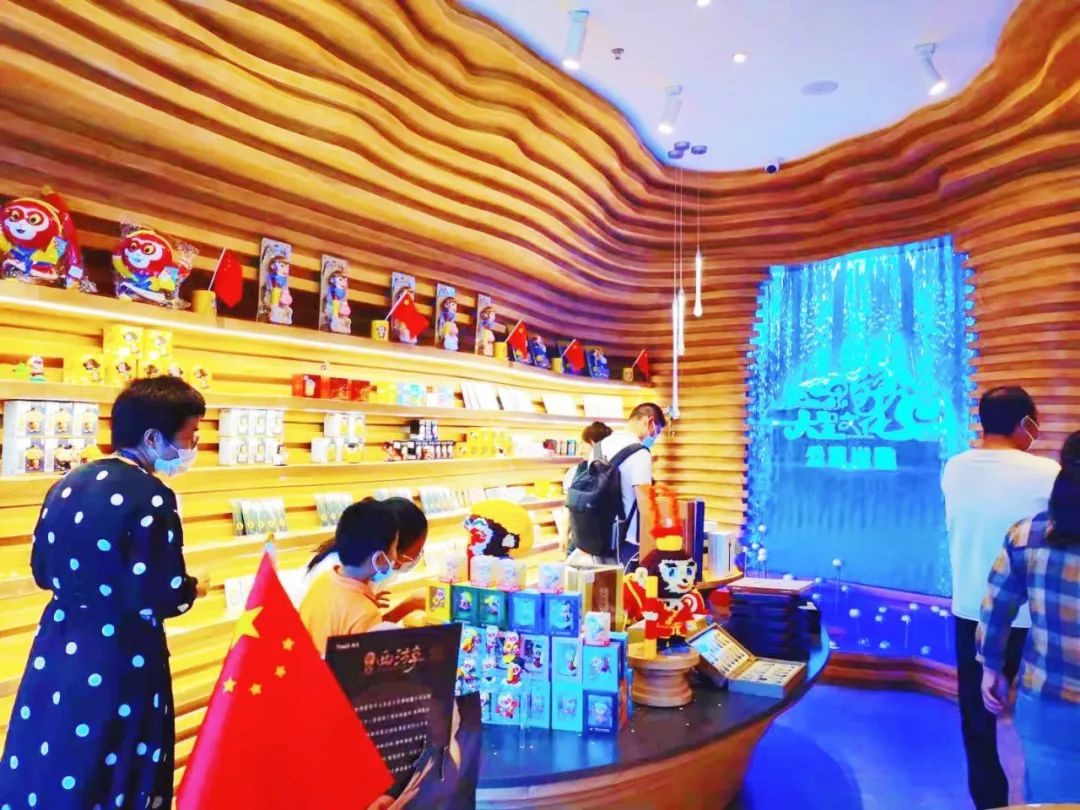 自我國推出“雙減”政策之后,更多游客選擇帶娃舉家出游,親子家庭群體成為十一國慶假期的出游主力。大圣公司西游文創(chuàng)旗艦店以其沉浸式消費吸引眾多親子家庭前來打卡,唐僧、悟空、八戒、沙僧造型等文創(chuàng)產(chǎn)品讓人愛不釋手。大圣公司與潤博公司共同推出的“360極限飛球”冰箱貼深受游客喜愛,影片《飛躍花果山》與“360極限飛球”冰箱貼成為假期最佳標(biāo)配。