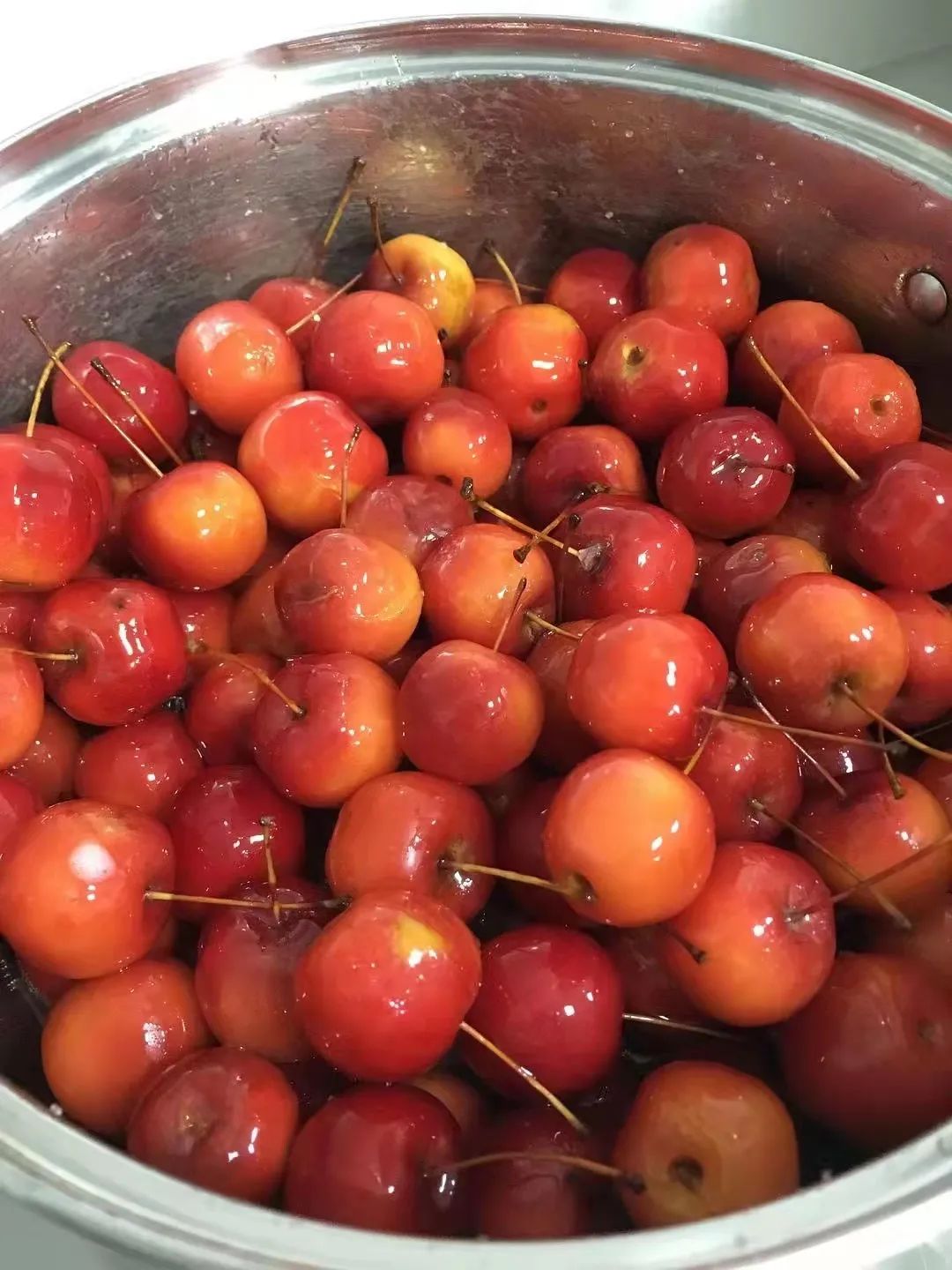 海棠果,又名楸子、海紅、紅海棠果、柰子,因?yàn)楣麑?shí)上有八道棱狀突起,又叫“八棱海棠”、“大八棱”,果皮色澤鮮紅奪目,果肉黃白色,果香馥郁,鮮食酸甜香脆,含有糖類、多種維生素以及有機(jī)酸,營養(yǎng)價(jià)值可與獼猴桃媲美,以“百益之果”著稱,有生津止渴、健脾止瀉的功效??芍苯邮秤茫芍谱髅垧T,也可制作果醬。